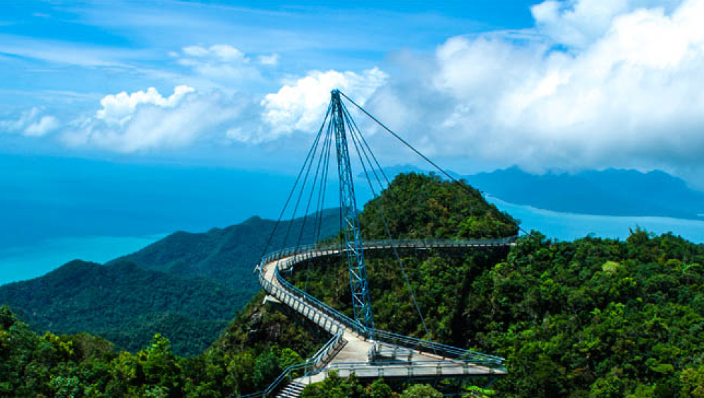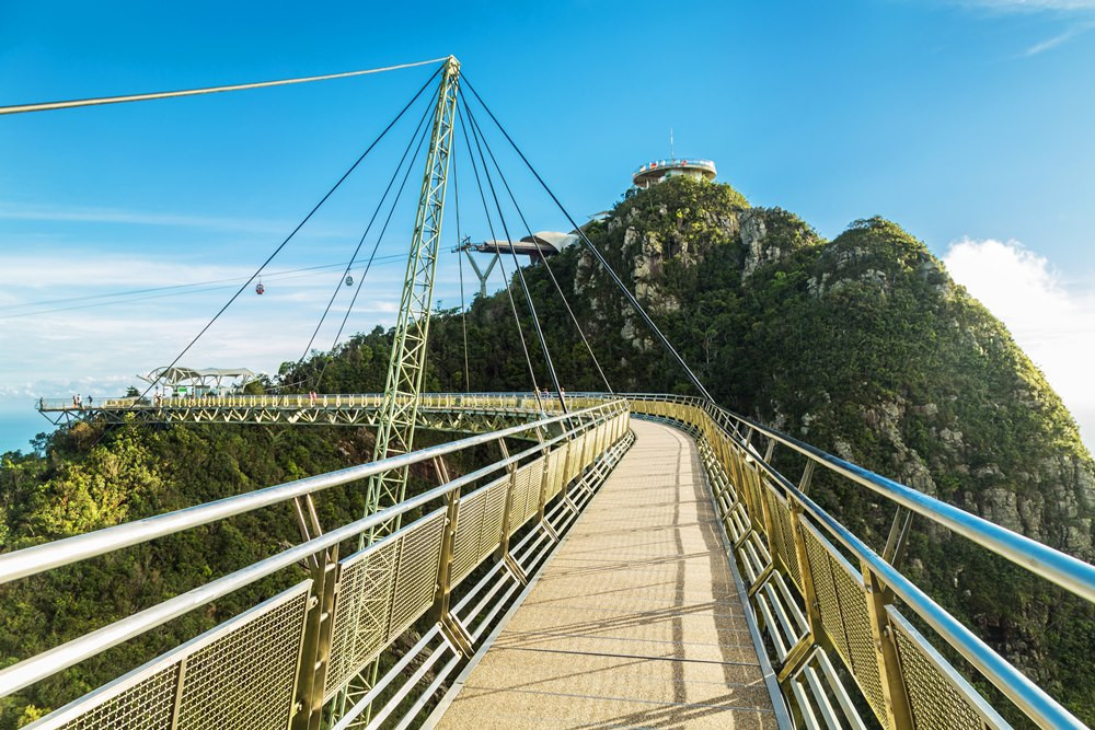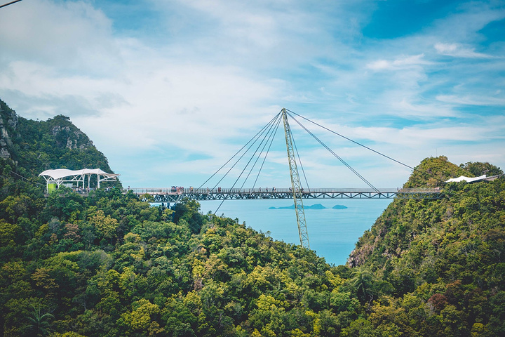 天空之桥是兰卡威的另一大亮点。这座桥总长125米,呈圆弧状,由钢材料构成,连接着两个山头。最令人惊叹的是,这座桥只用了一根支柱来支撑,支柱被固定在山腰,再由8根钢缆牵引。走在桥上,可以俯瞰兰卡威的美景,感受那份惊险与刺激。