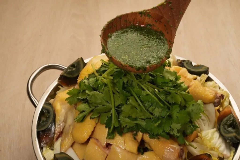 芫荽算是让人爱恨分明的食材,芫荽皮蛋鸡煲适合喜爱芫荽一族,汤底使用超过两斤芫荽打成,保证啖啖「荽味」。