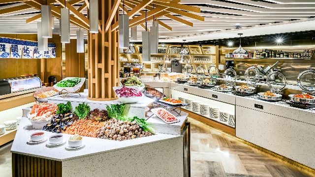 少有在酒店内,提供火锅半自助放题。自选套餐兼任饮任食各式新鲜蔬菜、即食面、乌冬、鲜果、甜品及饮品;供应时间为每天中午 12 时至下午 2 时 30 分 / 晚上 6 至 9 时 30 分,让你可以日打夜打!