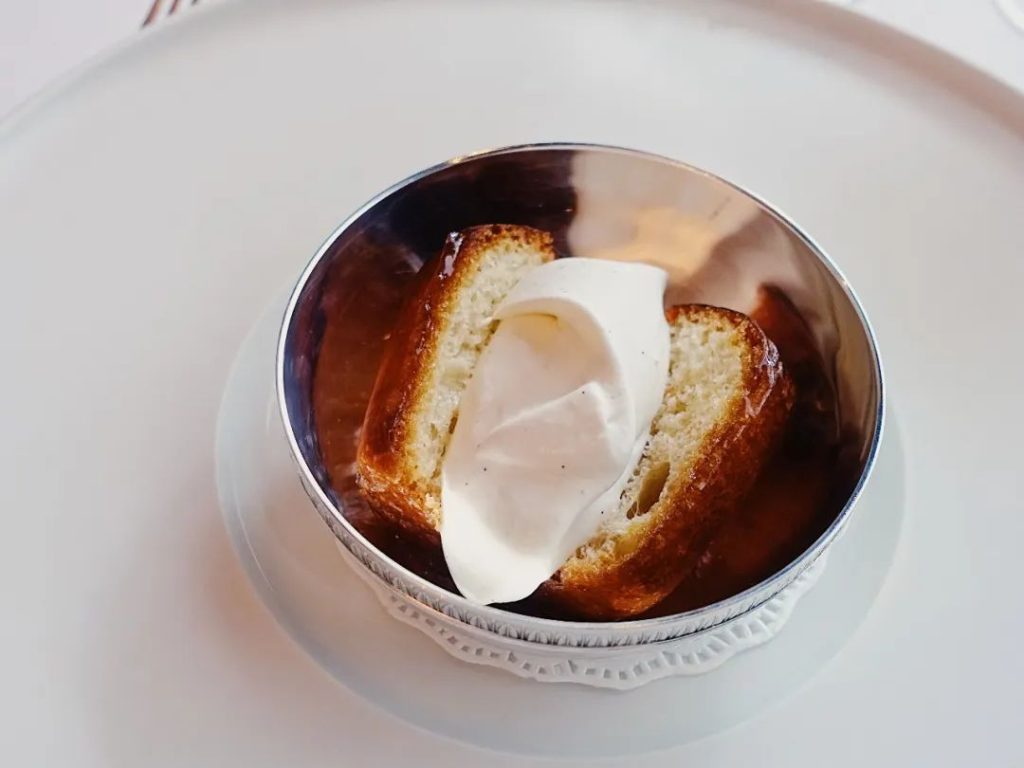 对了,Les Amis的甜品也非常棒,甜品师Cheryl Koh在2016年获得了亚洲最佳甜品师,她的Baba au Rhum朗姆爸爸蛋糕特别好吃!对半切开,慷慨泼上足量的农业朗姆酒,蒯上一大勺香草掼奶油,轻盈蓬松,盛在可人的银盏里,如油画般精致可爱……