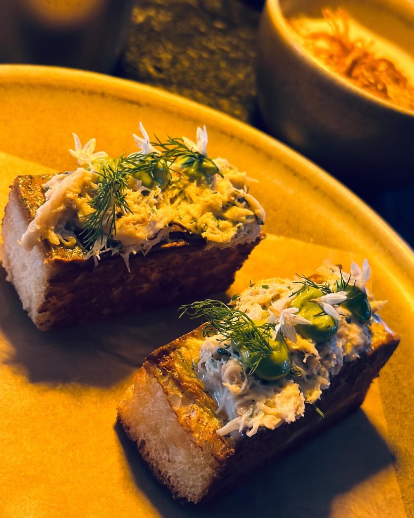 Les Amis的菜单上,我最喜欢的菜是节瓜海鳌虾配鱼子酱,它可谓是顶级食材配上顶级烹饪的完美化身。外层是紧致弹牙的触感,一刀切到中间,是将将断生的莹白色嫩肉,鲜味更是复杂霸道,连鱼子酱都要被比下去。