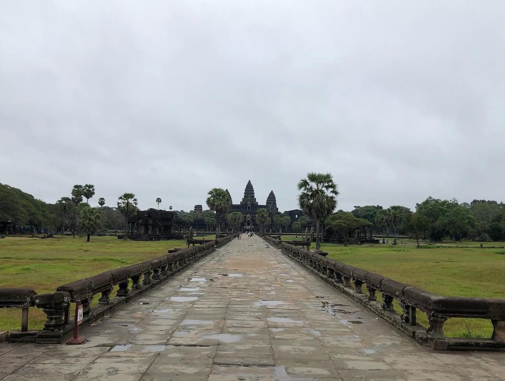 柏威夏寺位于柬泰交界的扁担山上,距离吴哥古迹所在的暹粒市约200多公里,单程将近三个小时,两地之间没有长途巴士,最好的交通方式是包车。