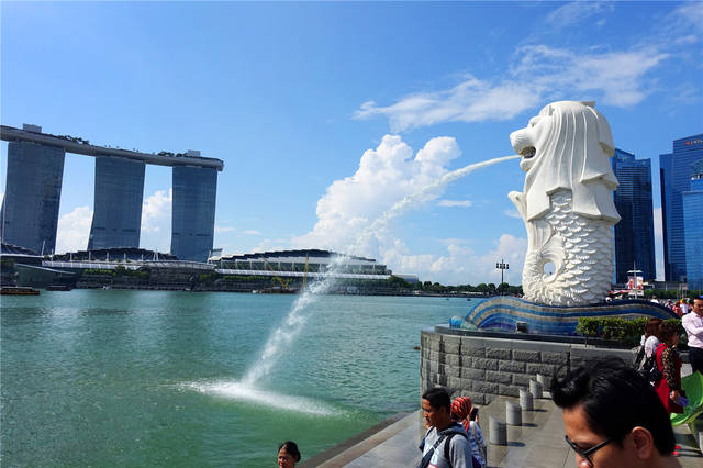 鱼尾狮公园里的鱼尾狮是新加坡的标志,它坐落于浮尔顿一号隔邻的填海地带,是新加坡面积最小的公园。1972年,当地的艺术家巧妙的将狮子头和鱼的身体结合起来,设计出鱼尾狮的形象。该塑像高8.6米,重70吨,狮头鱼身坐立在水波上的鱼尾狮,其设计概念是将现实和传说合二为一:狮头代表传说中的“狮城”,至于塑像的鱼尾造型,浮泳于层层海浪间,既代表新加坡从渔港变成商港的特性,同时也象征着我们当年飘洋过海,南来谋生求存,刻苦耐劳的祖祖辈辈们。
