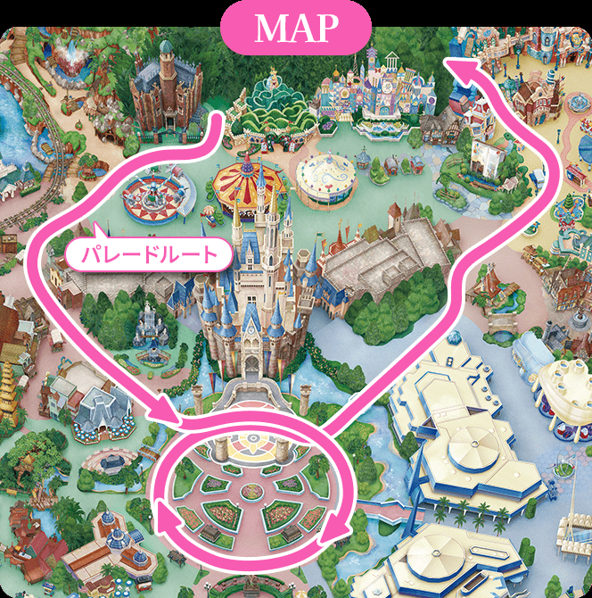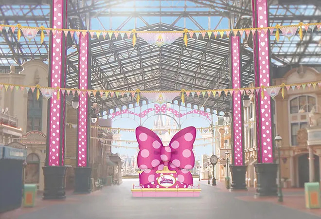 米妮将与朋友们穿着有心型及圆点装饰的服装,并且站在拥有独特大丝带、缤纷闪亮的花车上与大家一起享受这场充满米妮氛围的游行,期间限定游行不得不冲!