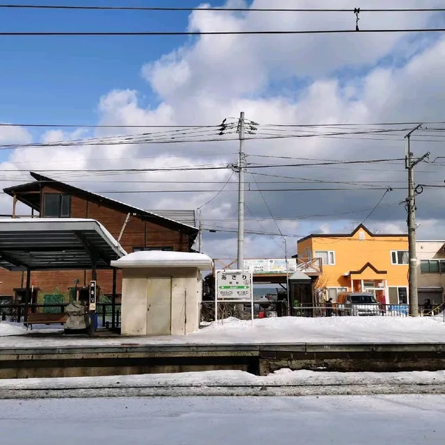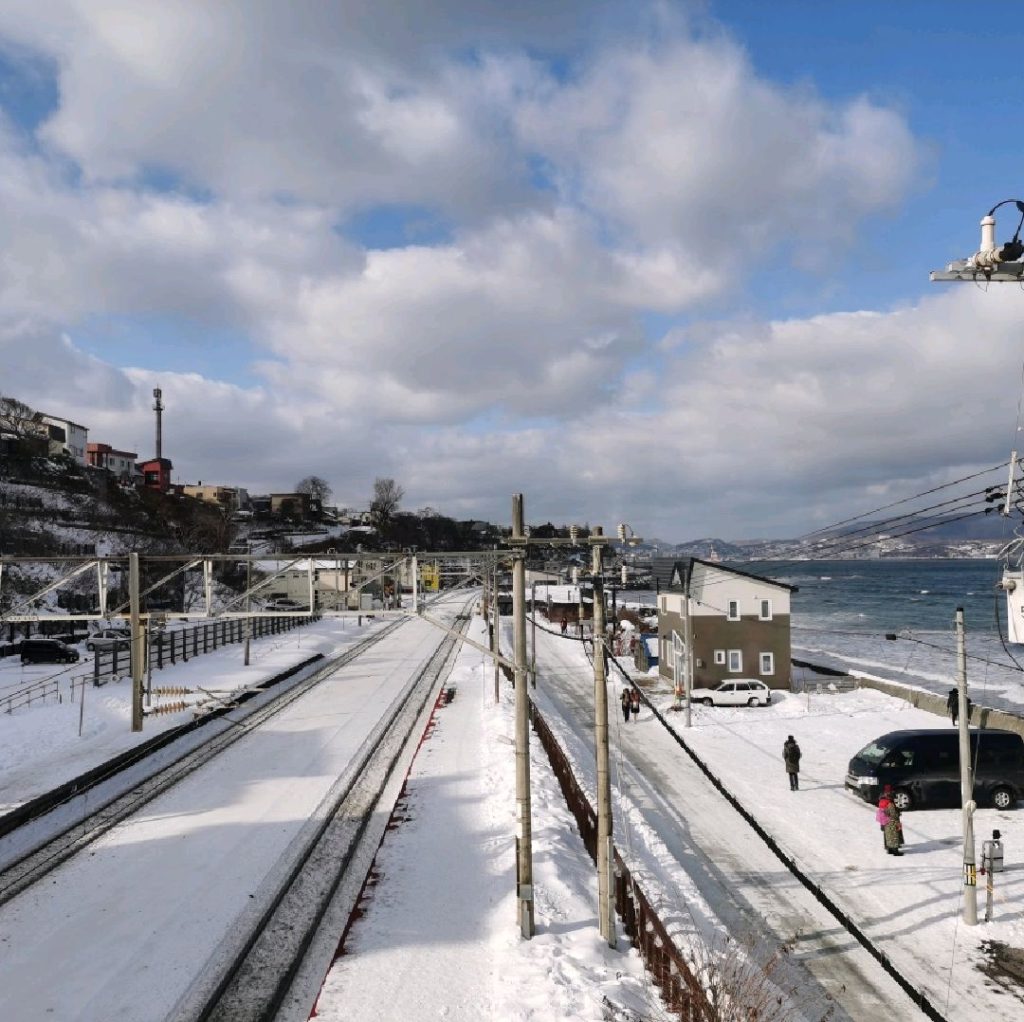 朝里是一个海边小站,白白的皑雪覆盖在海边的铁道上,宛若动漫里的场景再现!