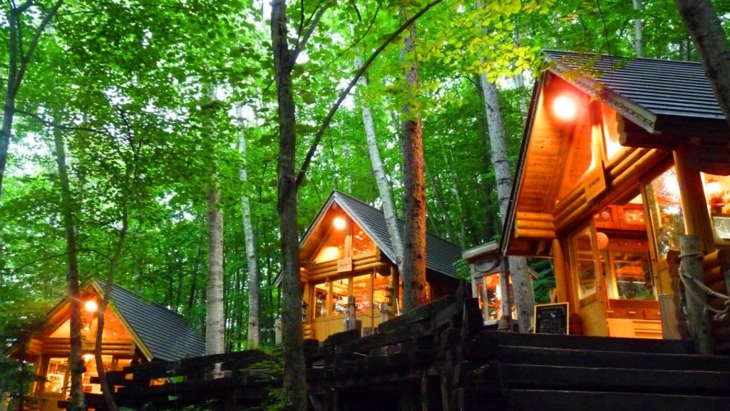 精灵露台位于新富良野王子酒店附近的山林里,森林原木制成的低矮小木屋。冬天来访,能在暖暖的室内看户外的雪景,非常惬意,就像天使与精灵居住的地方,身处童话里世界~