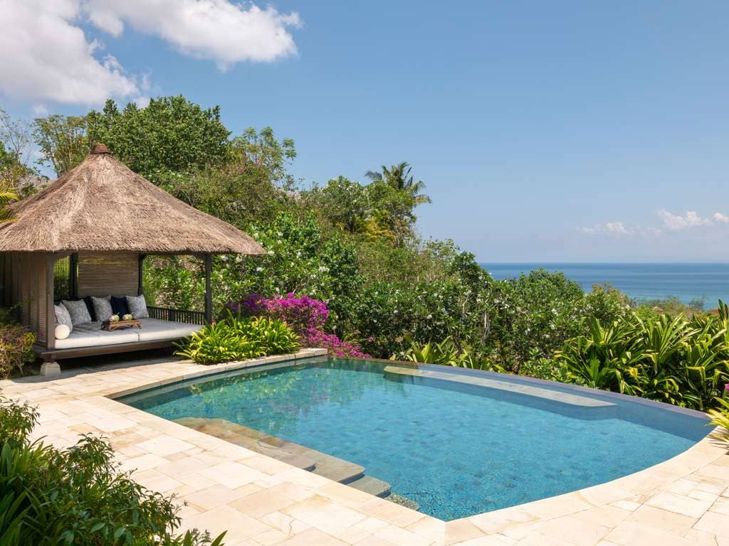 山顶私人泳池别墅以浪漫为设计理念,在最私密的环境中庆祝爱情,两侧环绕着郁郁葱葱的热带花园,前方是一望无际的金巴兰湾海景。一个浪漫的泳池别墅,可以与您所爱的人联系。