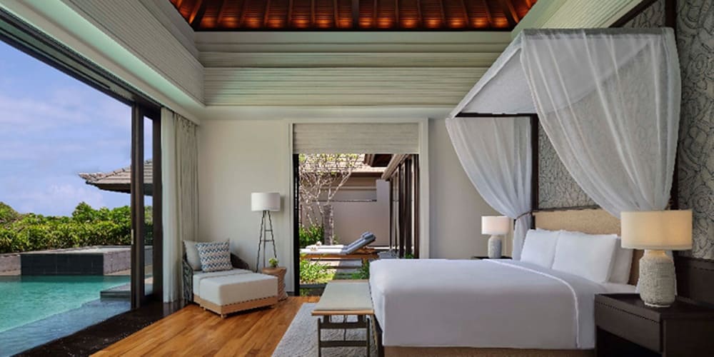 28 间 Sky Suite 和 Penthouse 以及 75 间 Cliff Pool Villa 完美诠释了巴厘岛的宁静祥和。这些别墅在郁郁葱葱的植被间怡然自居,并由巴厘岛的六善酒店提供专属管家服务。The Retreat 和 Presidential Villa 是最为富丽堂皇的巴厘岛住宿。