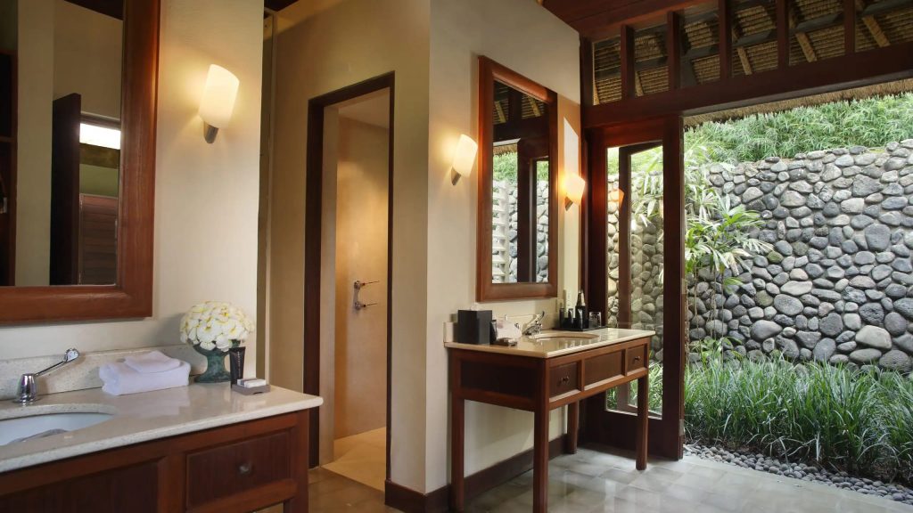 曼达帕丽思卡尔顿隐世酒店设有 35 间套房和 25 间带有私人泳池别墅,所有元素灵感均源于自然,并采用可持续环保建材,使之与周围的自然环境完美融合。这些房间设计装饰融合了经典的巴厘岛风格,在茂密的丛林中为了让客人远离尘嚣,放松身心,修身养性,酒店内处处水田环绕,让酒店回归自然,回归最纯朴的民风。
