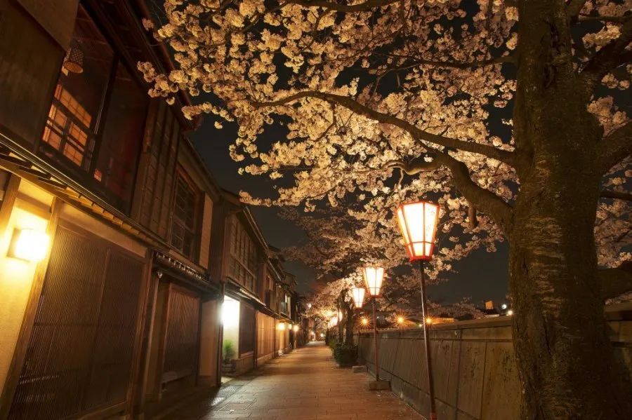 窄巷中的迷人茶屋街,黄昏时分,你可以听到艺伎演奏的三味线和太鼓,气氛洋溢。街道两旁是成排的红格子房屋,其中有一些老字号料亭和茶屋,到了晚上会亮橙色的灯,灯火从格子窗中透出,温柔恬静的氛围极度治愈。