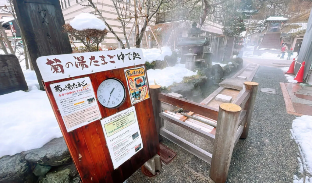 “菊之汤”单人泡汤费490日元,温泉水很热,可以顺便煮个温泉蛋吃。如果赶上周末和节假日,旁边的“山中座”还有艺伎表演可以看。