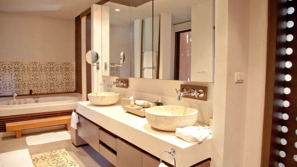 酒店内全新打造的自然居,包括20个新的泳池套房和10个顶层套房,面积从70㎡~140㎡不等。每间套房都配备了独立的无边泳池,套房屋顶皆是设计成树叶形状,完美融入周围的自然环境中。