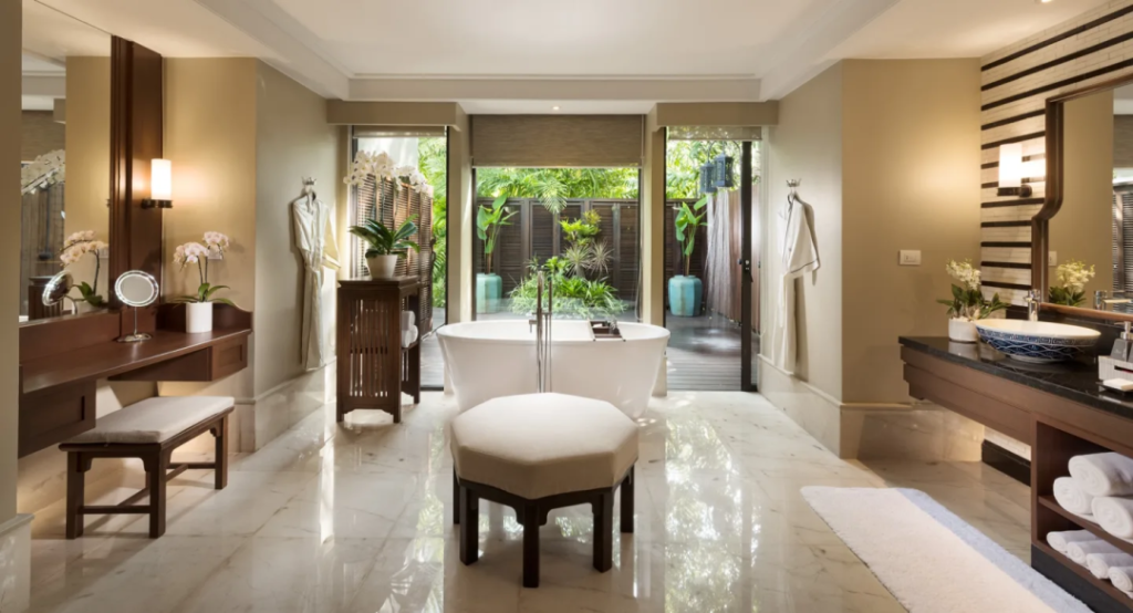 酒店内180㎡起的泳池别墅,周围环绕着宁静泻湖,30个泳池凉亭位于麦考安凡尼臻选相邻的热带花园中。其中吉姆·汤普森别墅距离海滩仅几步之遥,你与自然美景不过咫尺之间。