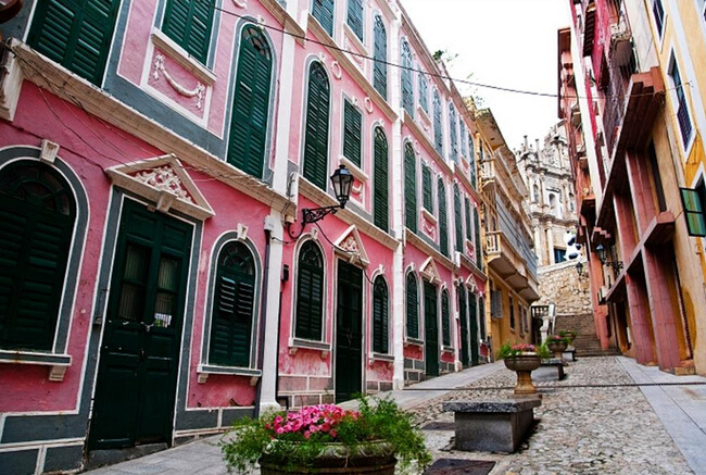 澳门半岛首推的打卡热点,必定是疯堂斜巷!集合大量葡国风情老建筑,外墙都是鲜艳的黄色、红色、绿色,路上以碎石马赛克铺满了漂亮的图案,还有欧式街灯,彷彿走进数十年前的葡国街头。附近有疯堂十号创意园和仁慈堂婆仔屋,是推广澳门文化艺术、创意的空间,也值得逛逛。