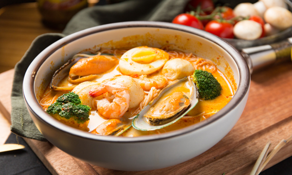 泰国拥有广阔的海域,所以海鲜非常新鲜、丰富而美味。在这里,你可以品尝到各种不同类型的海鲜菜肴,泰式海鲜卤面有着浓香卤汁,面条厚实Q弹,经过不断拉伸变形并保持原始口感,不失水分。让人忘返的口感与特色海鲜的结合,会让你忍不住一口接着一口。