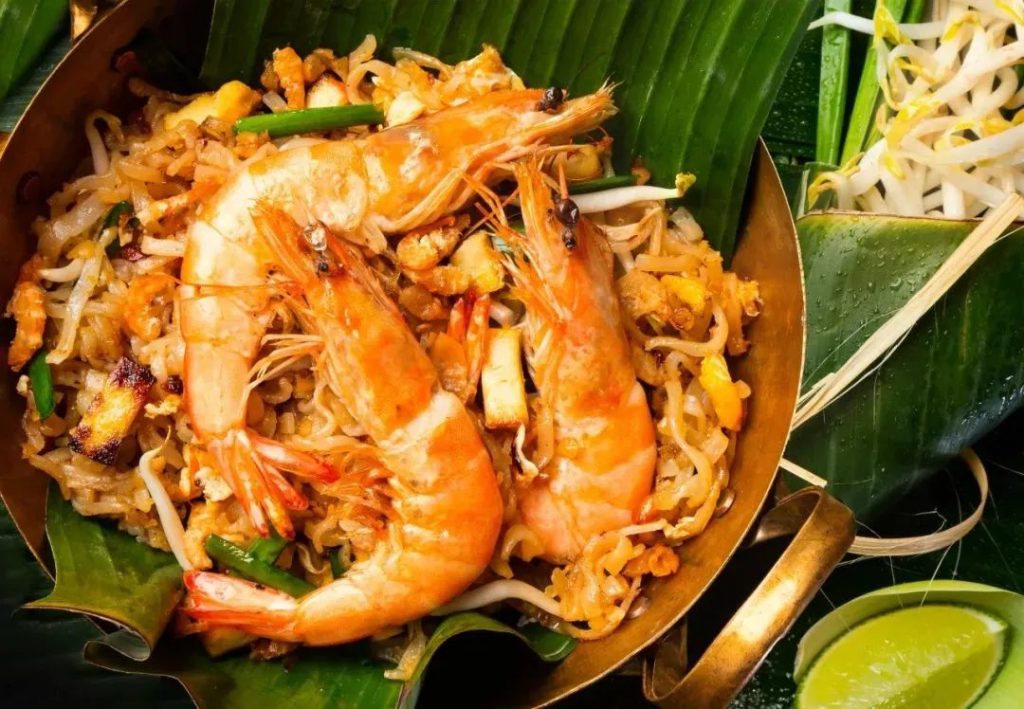 泰式炒河粉是泰国最广为人知的菜肴之一。将数把细河粉或宽河粉加上爽脆的豆芽、洋葱和鸡蛋,一起放入炙热的炒锅中拌炒。这道菜还加上各种香辛调料,例如鱼露、乾虾、大蒜或葱、红辣椒和棕榈糖。泰式炒河粉通常会加上海鲜拌炒,特别是新鲜的虾、蟹或鱿鱼,内容很丰富。
