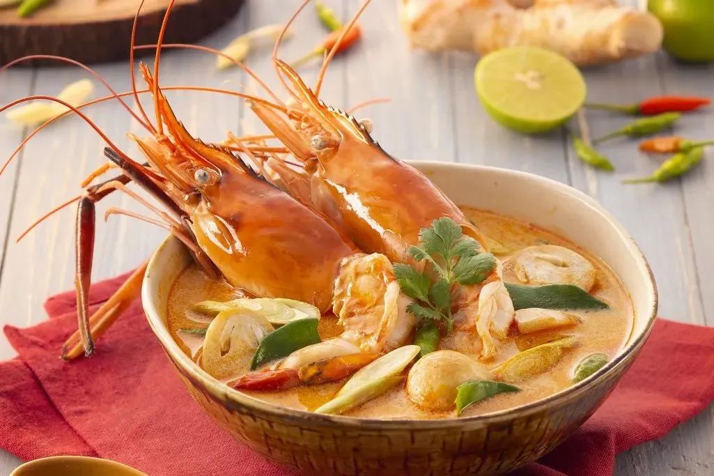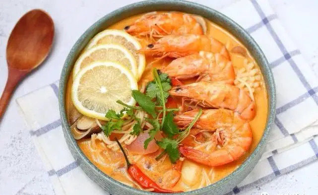 冬阴功汤是泰国的“国汤”,也是世界十大名汤之一。泰语中“冬阴”是酸辣的意思,“功”是虾的意思。所以直白点说就是酸辣虾汤。汤酸得浓烈,辣得厉害。简直就是酸爽的enjoy!它既可以暖胃解腻,又能刺激食欲。在泰国以及各地的泰餐馆中,冬阴功汤是一道受欢迎的菜肴。