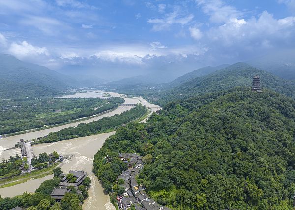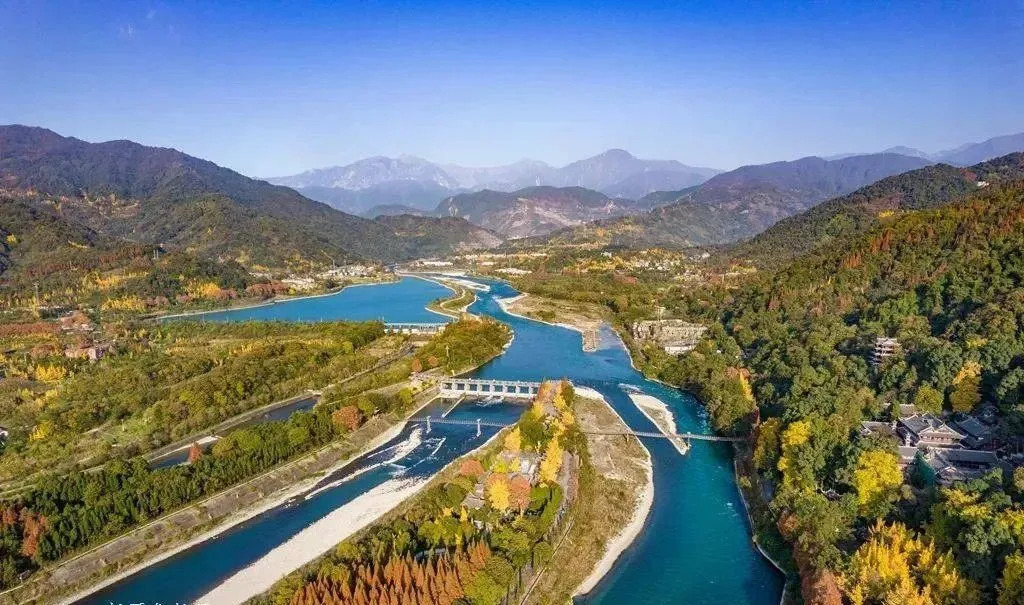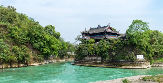 都江堰景区,位于都江堰市城西岷江干流上,由秦国蜀郡太守李冰及其子于西元前256年左右修建,是目前中国保存完整的古代水利工程。