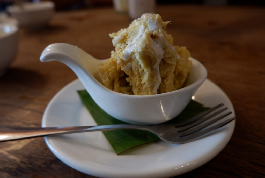 除此之外,餐厅的饮料和甜品也颇具匠心:招牌饮料“洛神花”红得通透的颜色第一眼就让人喜欢味道酸酸甜甜,在天气炎热的吉隆坡喝非常解暑。而“椰浆榴莲冰激淋”用醇香的大马榴莲捣成泥,加一点点盐让甜味更突出,再放进冰箱冷藏几小时。拿出来吃时浇上新鲜椰汁,几种味道融合在一起,恰到好处。