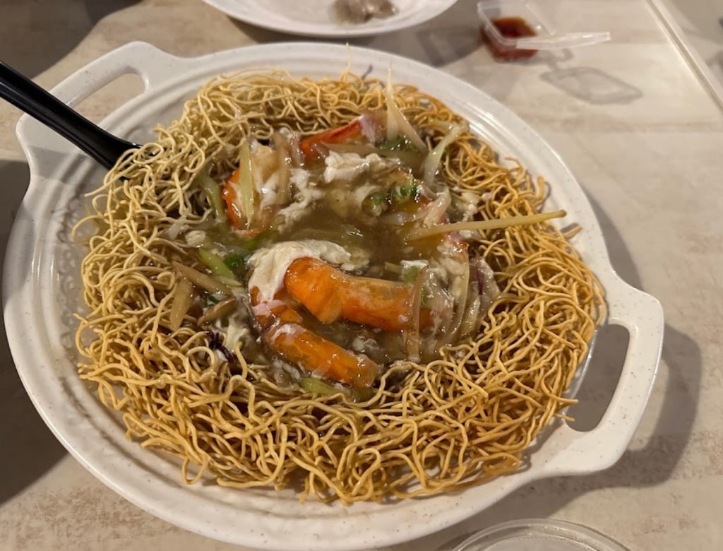 Lai Fong Lala Noodles曾经是一个简陋的街边摊,现在占据了两层楼。这家商店以其 Lala Bihun而自豪。肉汤带有绍兴花雕(中国黄酒)和生姜的香气,而面条最好搭配大虾。他们的啦啦米粉超大一碗,啦啦铺盖在米粉之上,浓浓酒香味的汤汁非常的鲜甜,一整碗怎么捞都是啦啦,再搭配上Q弹有嚼劲的米线,热腾腾的一碗真的让人无限回味!除了啦啦米、还有生虾米和辣辣炒米粉也很值得一试!