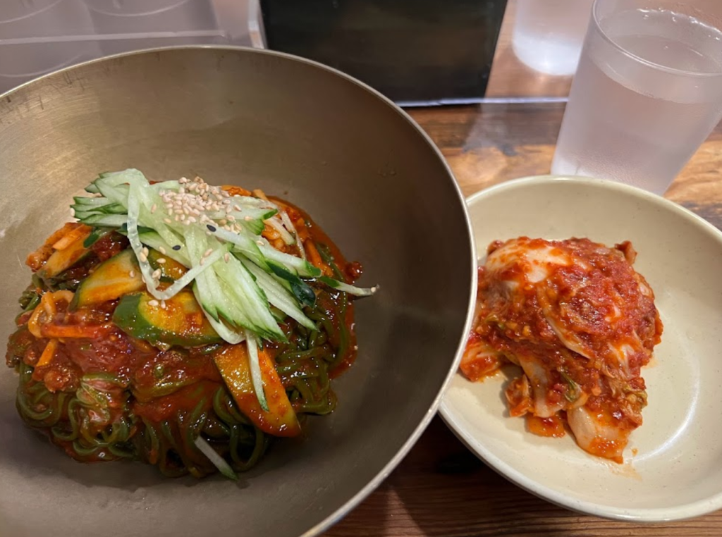 米其林良心推荐。这家店可能是网红店的一股清流,只有四种菜品:猪肉蒸饺、馄炖手打面、黄豆汁面和韩式辣拌面。蒸饺个头很大,有点像去了汤汁的小笼包,皮薄馅大,一口吃进去非常满足~韩式辣拌面是推介必点!酱汁包裹着绿面条再加上清爽的黄瓜丝儿,即使在冬天吃也特别爽口惬意。