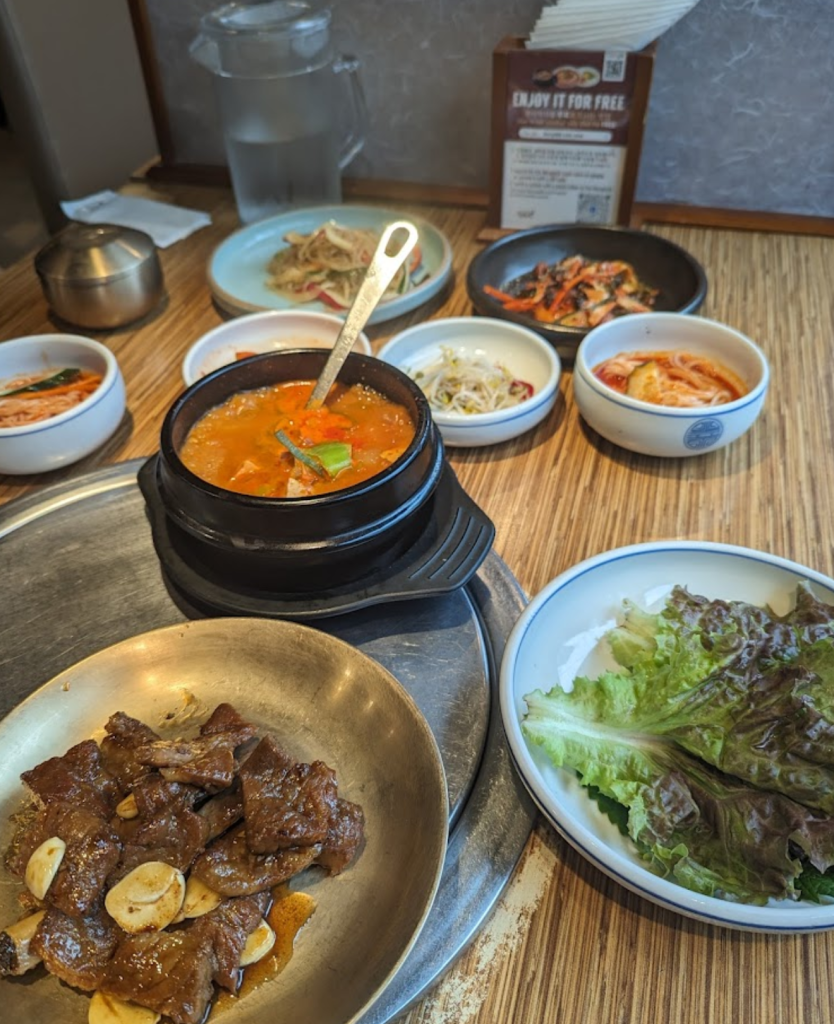 首尔人气超高的烤肉店,食材超级新鲜~老板也real亲切。滋滋的烤盘+喷香的五花肉配上香甜的酱汁~烤猪排肥而不腻,烤韩牛+特色海盐完全是origin的吃法,很好的保留了韩牛原本的肉香。就是价格有点小贵!他家随肉附送的小菜也是琳琅满目。大蒜+泡菜+辣椒+葱丝加上超厚的烤肉一口包,好吃到尖叫!