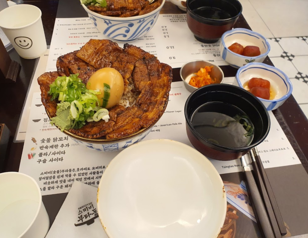 这家烤肉饭是火了很久的日式盖饭,位置就在弘大商圈内,是半地下的一家店,位置比较特别,店面也不大,但是里面装饰得很温馨~烤肉饭的价格也不贵,9000韩币/份,不得不说这分量真的是非常良心了,被称为“溢出来的烤肉饭”,喜欢吃肉的朋友一定要点大份的!
