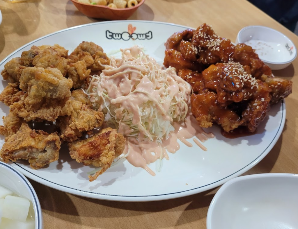 到了都教授的地盘,没有炸鸡和啤酒怎么可以!twotwo炸鸡严选韩国产鸡肉,是韩国local也钟爱的炸鸡品牌。炸鸡的外皮加入了韩国特制料粉,所以它的味道才如此独一无二~炸鸡有原味、辣味、黄油味和蒜蓉味,可以双拼很人性化。外皮金黄酥脆,肉质鲜嫩多汁,加上啤酒简直是完美!