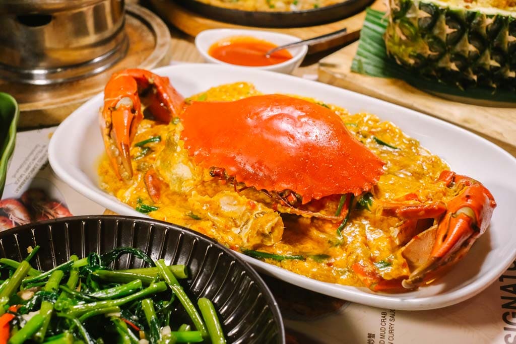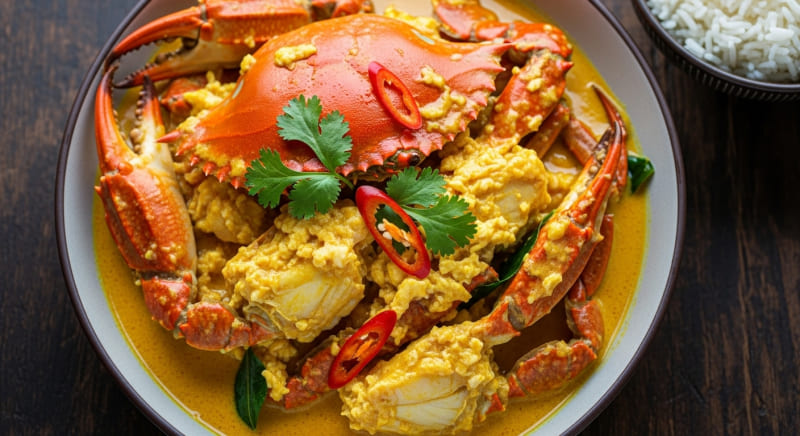 泰式咖喱蟹,是一道菜品,主料是螃蟹,配料是菠萝、粉丝,调料是葱、姜、蒜等,通过油炸、煸炒、翻炒的做法而成。咖喱含多种调料,像姜黄素、丁香、肉桂、茴香、小茴香子等,营养成分丰富;而蟹肉味鲜美,含有大量蛋白质和脂肪,较多的钙、磷、铁、维生素等物质,做得好的咖喱蟹,浓香四溢,蟹味鲜,粉丝糯软。