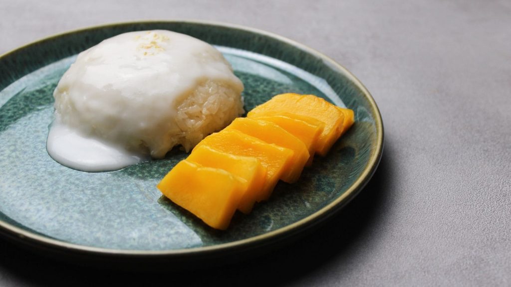 芒果糯米饭,是泰国特色美食,将芒果切块装入盘中,另一侧放入淋上椰汁的糯米饭。这道被当作甜点的饭料理,兼具了浓郁又清爽的口感。芒果糯米饭不仅在泰国或是泰式餐厅能吃到,在家也可以制作。芒果糯米饭是以芒果、糯米、椰浆、冰糖粉等为主要原料做成,制作方法简单。