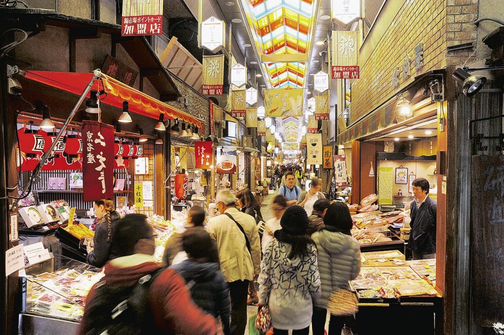 锦市场,可以理解为京都人的农贸市场,有400年历史,也不大,比较干净,还是值得去逛的。这个不是一大早就营业的那种菜市场,上午去比较好,有很多地道的小吃店,还可以买点清酒、鱼干,当地人也去,比较有生活气息,有点意思。