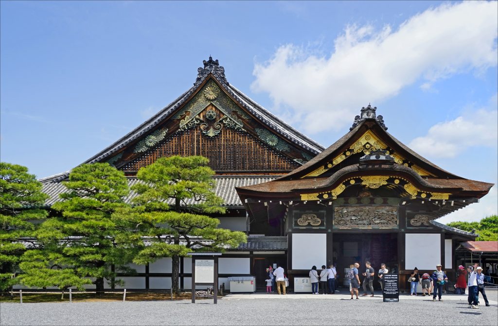 二条城,世界文化遗产。早些年,我买过全套《德川家康》看过,9本,终于用上了。二条城就是德川家康建的,可以说是江户幕府权利的象征,它的细节其实是可以代表日本古代建筑美学的最高水平的。建筑群也不大,日本都这样,“鬼头鬼脑”的。东边是上班的,西边是睡觉的。室内是禁止拍照的,德川家的人怕被刺杀,地板都设计成了人走在上面会发出声音的。